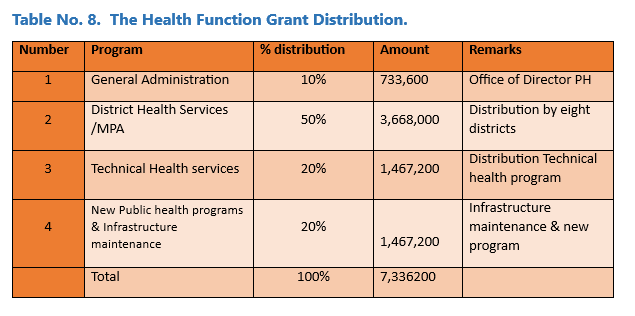 - 2. The Provincial Governments Internal Revenue supporting the health service delivery.