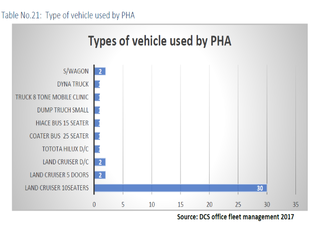 The type of vehicle now under use by the EH PHA are the Toyota brand that is predominantly used. All the eight (8) districts of EHP have a 10 seater available as the Ambulances and for general purposes.